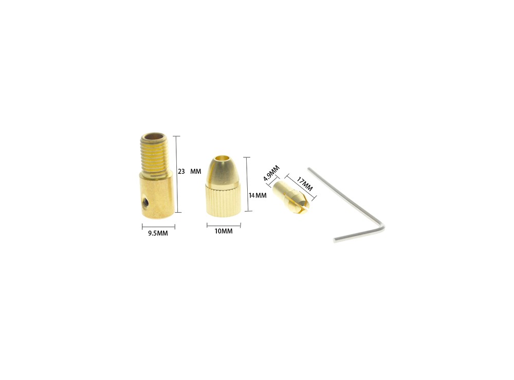 این ست شامل یک چاک مینیاتوری برنجی و مته است که بهگونهای طراحی شده که امکان استفاده و تعویض آسان آن برای ایجاد یک مته دستی را فراهم میآورد. گیرههای برنجی با کیفیت بالا بهخوبی با برخی از ابزارهای چرخشی و گیرههای پین سازگاری دارند. این گیرهها میتوانند با متههای پیچدار بهعنوان یک مته دستی مینی برای سوراخکاری روی تخته ABS، ورق آلومینیوم و مقوا استفاده شوند.