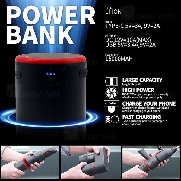 همانطور که گفته شد در ست لوازم نظافت خودرو Fanosys Auto Smart Kit، یک پاوربانک نیز قرار گرفته است. این پاوربانک، ظرفیتی برابر با 15000 قرار گرفته است. شما میتوانید این پاوربانک را به جارو شارژی، پمپ باد یا کارواش وصل کرده و از آن برای مدت قابل توجهی استفاده کنید. ازین پاوربانک میتوانید برای شارژ گوشی خود با توا ن15 وات نیز استفاده کنید. همچنین میتوانید از درگاه تایپ سی با سرعت بالا ظرف تنها 3 تا 4 ساعت شارژ کنید.