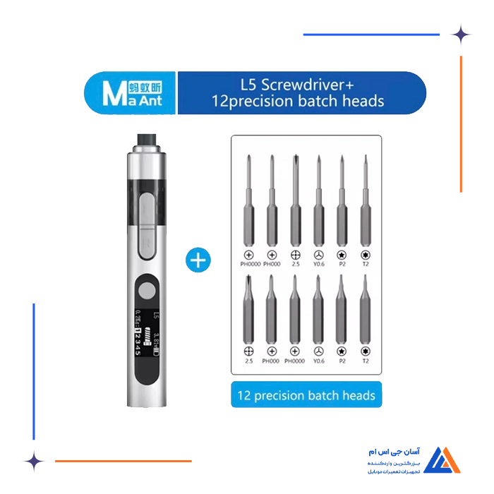 ست پیچ گوشتی شارژی MAANT L5 یک ابزار حرفهای برای تعمیرات دقیق است. این محصول با گشتاور قابل تنظیم 0.2 تا 0.6 کیلوگرم بر سانتیمتر و سرعت چرخش 500 دور در دقیقه، برای بازسازی موبایل، تبلت و لپتاپ ایدهآل است. سریهای مغناطیسی S2 با سختی 62HRC و نمایشگر HD کریستال مایع، کارایی و دقت را تضمین میکنند. باتری 280 میلیآمپرساعتی با شارژ سریع 45 دقیقهای و پورت Type-C، این ابزار را به گزینهای کارآمد و قابل حمل تبدیل کرده است.