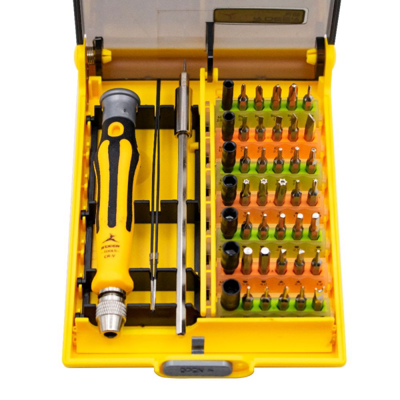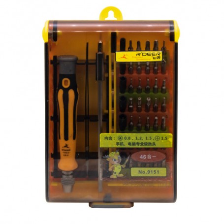 مجموعه پیچ گوشتی RDEER با 43 عدد سری مختلف و قابل تطبیق با کار در زمینه های مختلف. از فولاد کروم وانادیوم با کیفیت بالا ساخته شده است. طول قابل تنظیم دسته باعث می شود کارهای مختلف را به راحتی انجام داد.این پیچ گوشتی ها دارای طراحی ارگونومیک بوده و به طور گسترده برای اکثر محصولات دیجیتال مانند کامپیوتر، تلفن همراه، دوربین، عینک و ساعت استفاده می شود.