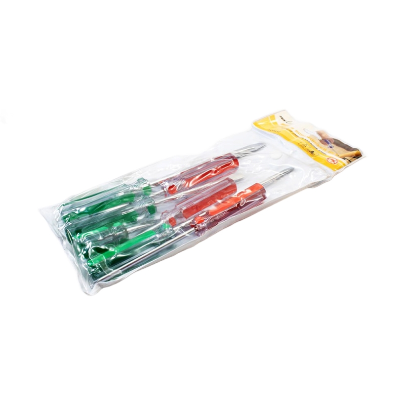 مجموعه 7 عددی پیچگوشتی دوسو و چهارسو با تیغه فولادی کروم-وانادیوم و دسته مقاوم شفاف