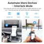So you can enable self-locking mode to turn on/off 4 connected devices independently, interlock mode to turn on 1 connected device every time and turn off the rest of devices simultaneously and inching mode to turn on 1 connected device and then make it turn off automatically after a given time (0.5 – 3600s).