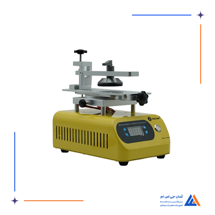 یک دستگاه حرفهای تعمیر صفحهنمایش موبایل است که دارای طراحی چرخشی ۳۶۰ درجه، سیستم پمپ خلا دوتایی و کنترل دقیق دما میباشد.