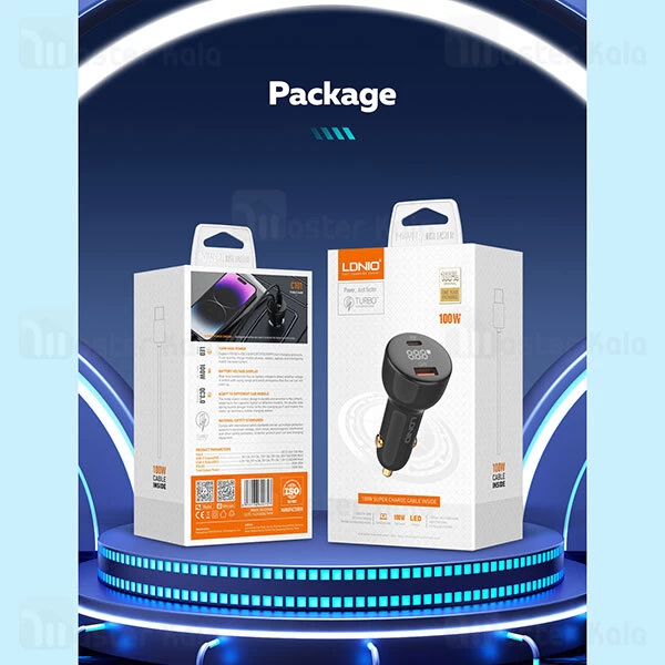 شارژر فندکی الدینیو LDNIO C101 توان 100 وات همراه با کابل