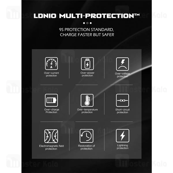 شارژر فندکی الدینیو C22Q دارای 9 ویژگی ایمنی است که در ادامه میآید. همچنین این شارژر فندکی دارای گواهی CE است که نشان از کیفیت بسیار بالای آن دارد.