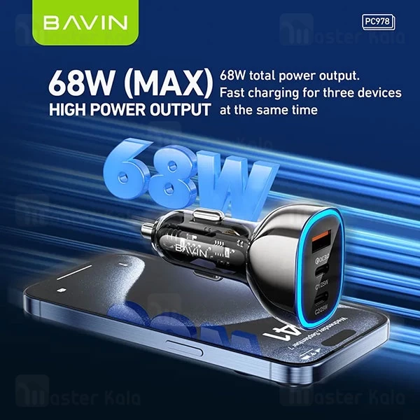 توان خروجی قدرتمند 68 وات شارژر Bavin PC978 قابلیت ارائه توان خروجی تا 68 وات را دارد که برای شارژ سریع انواع دستگاهها ازجمله گوشیهای هوشمند، تبلتها، و حتی لپتاپهای سبک مناسب است. این ویژگی در شارژر فندکی باوین PC978 باعث میشود تا کاربران بدون نگرانی از سرعت شارژ پایین، دستگاههای خود را در زمان کوتاه شارژ کنند.