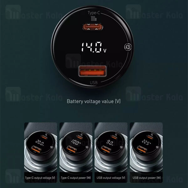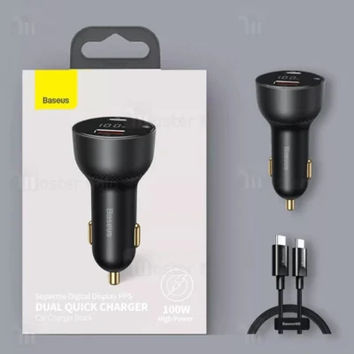 شارژر فندکی فست شارژ بیسوس Baseus Superme Digital Display CCZX-100C TZCCZX-01 توان 100 وات با کابل