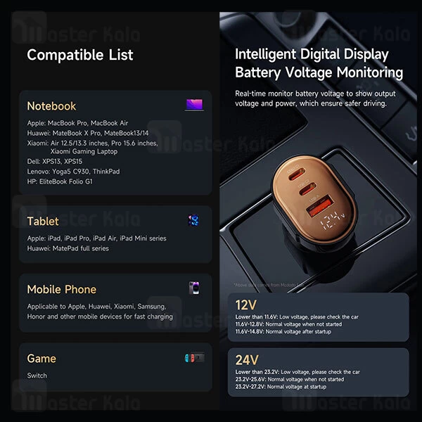 همچنین از یک پورت تایپ سی آن می توان برای شارژ مک بوک سری 13پرو نیز می توانید استفاده کنید. همچنین دارای تکنولوژی شارژ سریع PD3.0,FCP/SCP,AFC,QC3.0 نیز می باشد که می توانید در کمترین زمان ممکن گوشی تبلت یا مک بوک را در ماشین خود شارژ نمائید.