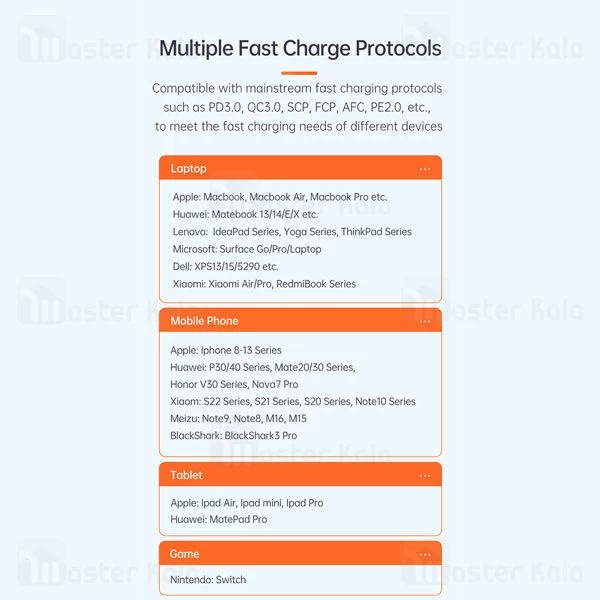 توان خروجی کلی: QC 30W (Max) + PD 65W (Max) = 95W (Max)