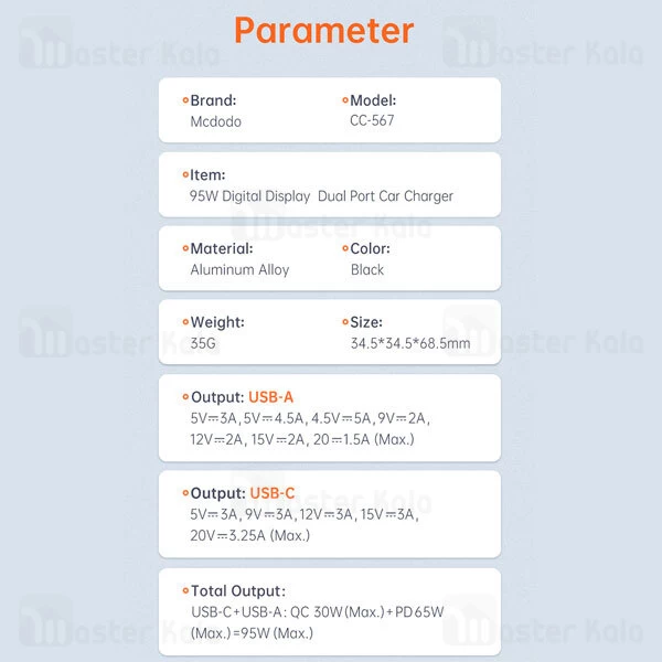 شارژر فندکی مک دودو Mcdodo CC-5670 توان 95 وات