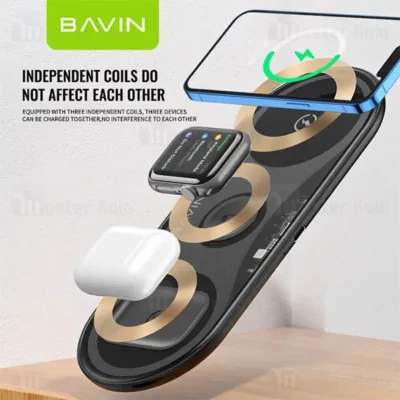 شارژر وایرلس باوین Bavin PC817 3 in 1 wireless charger توان 15 وات با قابلیت شارژ اپل واچ