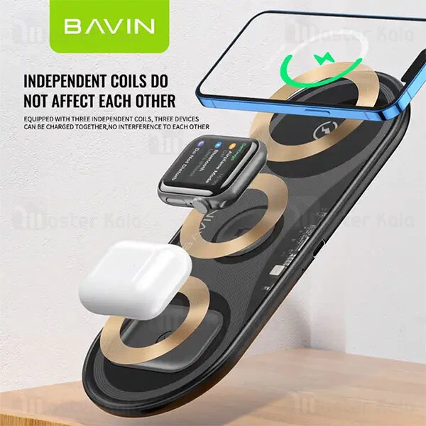 شارژهای وایرلس با توجه به راحتی در استفاده می توانند جایگزین مناسبی برای شارژهای دیواری باشند. باوین تصمیم گرفته تا با طراحی شارژر وایرلس Bavin PC817 یک محصول چند کاره ارائه کند که میتوانید به وسیله آن گوشی، ساعت هوشمند و هندزفری بلوتوث خود را به صورت همزمان شارژ نمایید.