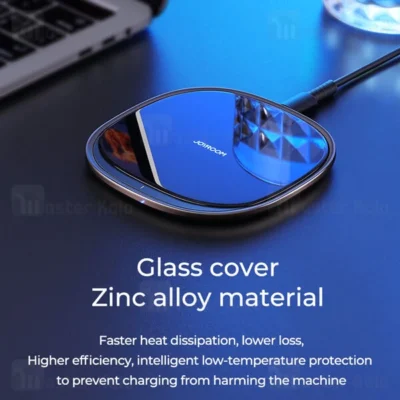 قسمت بالای این محصول به صورت شیشه ای طراحی شده و براق است که زیبایی این محصول را دو چندان کرده. ابعاد شارژر وایرلس Joyroom Square Mobile Phone معادل 99.2×99.2×7.4 میلی متر بوده و همان طور که اشاره شد، وزنی که این شارژر وایرلس دارد، معادل 156 گرم است. شدت جریان ورودی و ولتاژ مورد نیاز برای این محصول برابر با 5V-2.4A / 9V-2A / 12V-1.5A است و امکان پشتیبانی از توان خروجی 5W / 7.5W / 10W / 15W را دارد.