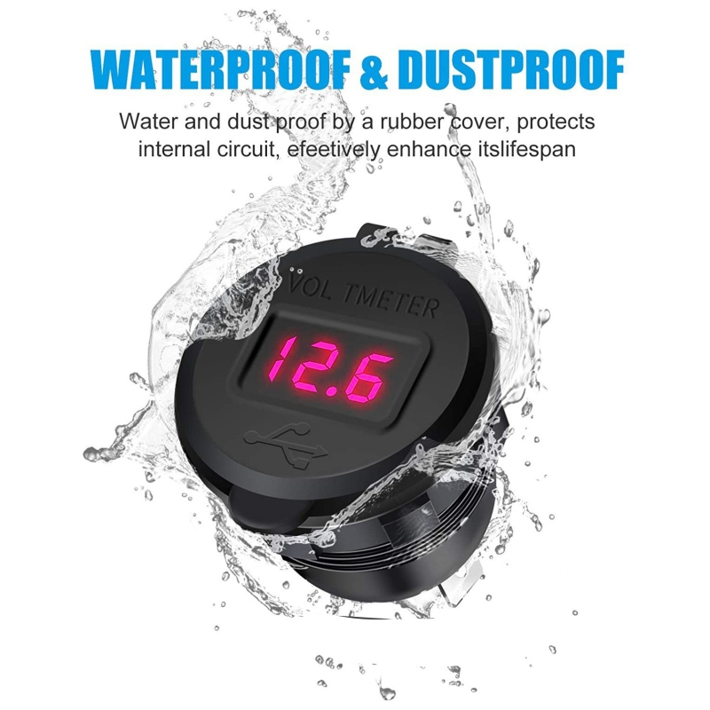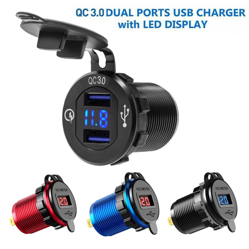 شارژر USB خودرویی روپنلی گرد قرمز دو خروجی فست شارژ QC3.0 با نشانگر ولتاژ