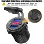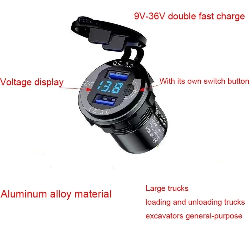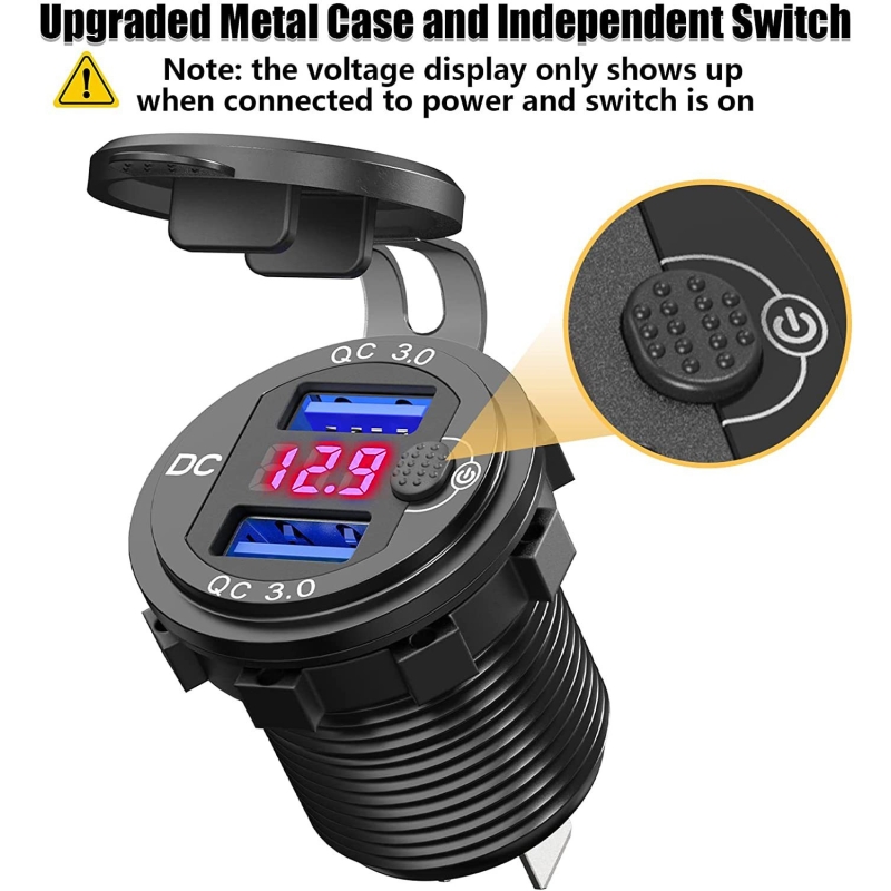 شارژر USB خودرویی روپنلی گرد قرمز دو خروجی فست شارژ QC3.0 با نمایشگر ولتاژ و کلید ON/OFF