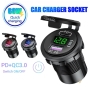 شارژر USB خودرویی روپنلی گرد قرمز QC3.0 + Type-C با نمایشگر ولتاژ و کلید ON/OFF