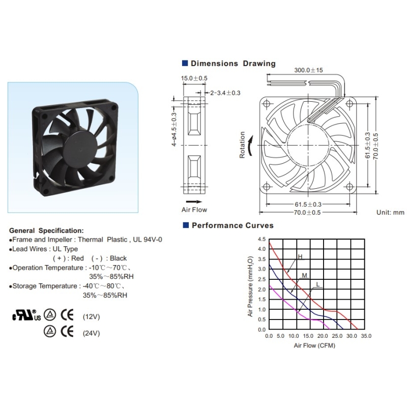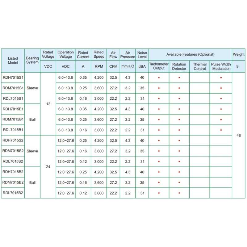 فن 12V دو سیمه سایز 7x7 ضخامت 1.5cm مارک XFAN مدل RDM7015S1
