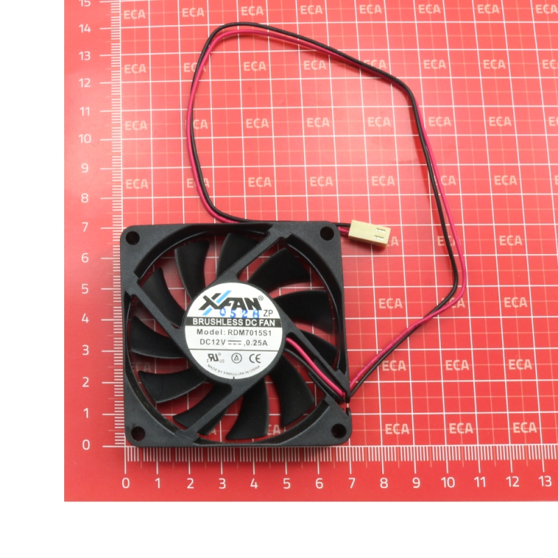 فن 12 ولت دو سیمه 7×7 سانتیمتر مارک XFAN از نوع براشلس مدل RDM7015S1