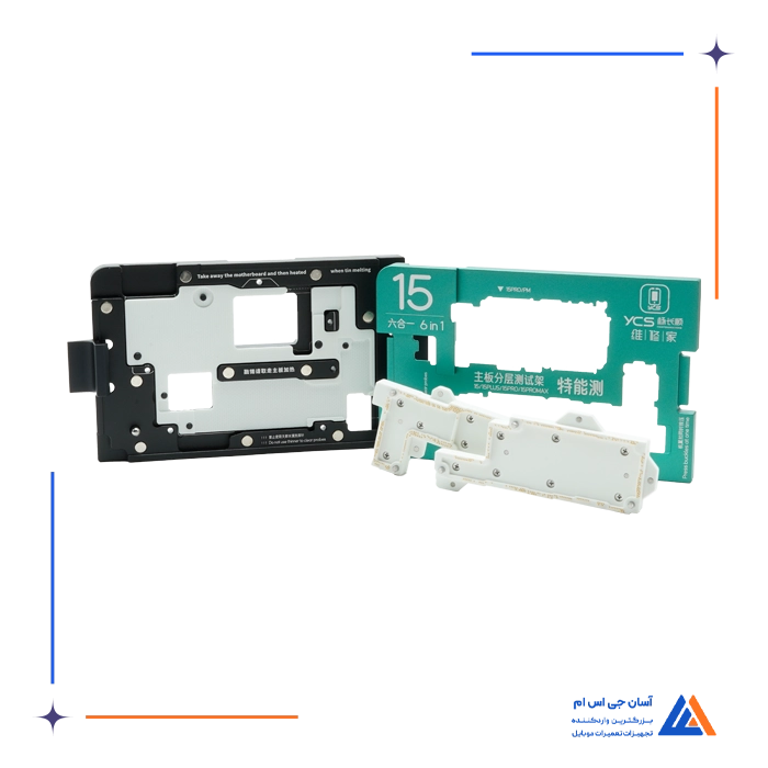 فیکسچر طبقات سری YCS 15 ابزاری حرفهای برای تست و تعمیر مادربرد گوشیهای آیفون سری 15 است که با طراحی مقاوم و ارگونومیک، امکان تعمیرات دقیق و بدون آسیب به برد اصلی را فراهم میکند.