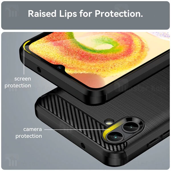 کاور ژله ای فیبر کربن سامسونگ A04 تمام قسمت های گوشی را بجز نمایشگر پوشش می دهد و در ضمن قسمت بالا و پایینی این کاور مقداری برآمده بوده که تا روی پنل جلویی گوشی می آید تا هیچ محلی بجز نمایشگر در معرض ضربه نباشد.
