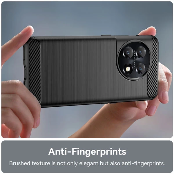 کاور ژله ای فیبر کربن OnePlus 11 تمام قسمت های گوشی را بجز نمایشگر پوشش می دهد و در ضمن قسمت بالا و پایینی این کاور مقداری برآمده بوده که تا روی پنل جلویی گوشی می آید تا هیچ محلی بجز نمایشگر در معرض ضربه نباشد.