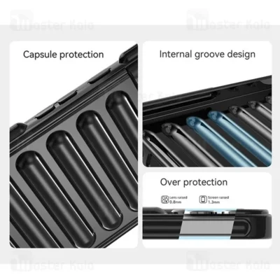 قاب کپسولی Samsung A35 در قسمت پشتی خود دارای حالتی به شکل کپسولهای هوا بوده که مقاومت گوشی را نسبت به قابهای معمولی چندین برابر میکند و قاب را در برابر سقوط و ضربه کاملاً مقاوم میکند. در اطراف بدنه نیز چند فضای کپسول مانند تعبیه شده که از آسیب دیدن گوشی در صورت سقوط بر روی لبهها خودداری میکند. در عین این سطح بالا از محافظت از گوشی، به سبب اینکه این قاب از مواد TPU ساخته شده، انعطافپذیری بالایی نیز دارد.