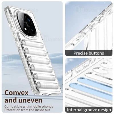 قاب کپسولی Xiaomi Redmi Note 14 Pro Plus 5G در قسمت پشتی خود دارای حالتی به شکل کپسولهای هوا بوده که مقاومت گوشی را نسبت به قابهای معمولی چندین برابر میکند و قاب را در برابر سقوط و ضربه کاملاً مقاوم میکند. در اطراف بدنه نیز چند فضای کپسول مانند تعبیه شده که از آسیب دیدن گوشی در صورت سقوط بر روی لبهها خودداری میکند. در عین این سطح بالا از محافظت از گوشی، به سبب اینکه این قاب از مواد TPU ساخته شده، انعطافپذیری بالایی نیز دارد.