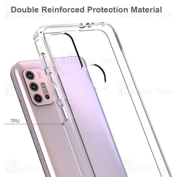 جنس بدنه این محافظ از جنس پلاستیک تقویت شده است که تا حدود زیادی جلوی ضربه وارد شده به بدنه موبایل را میگیرد. قسمت دکمه های گوشی نیز در کاور برجسته تر تولید شده تا تا از خراشیدگی و ضربه خوردن کلیدهای گوشی جلوگیری کند. این کاور در قسمت اسپیکر و پورتهای دیگر به صورت دقیق برش خورده است و اختلالی در عملکرد آنها ایجاد نمیکند. این کیس تماما ژله ای و انعطاف پذیر بوده و کاملا متناسب با اندازه و ابعاد گوشی Motorola G10 / G30 تولید شده است.