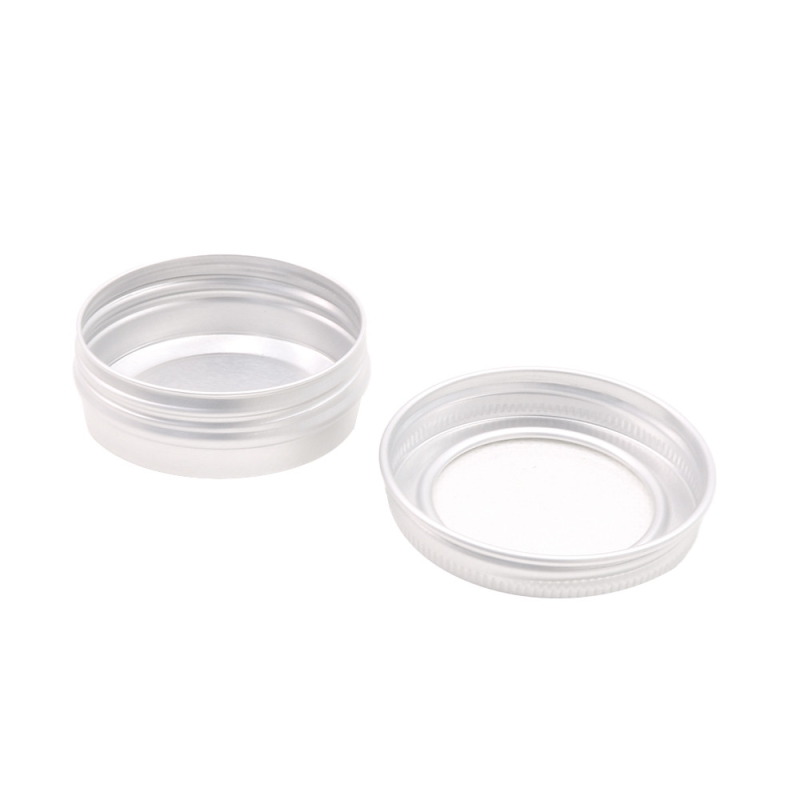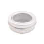 قوطی فلزی نقره ای با درب شیشه ای 80ml سایز 68x32mm