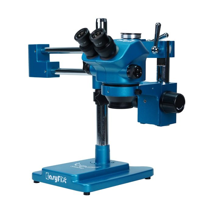 لوپ سه چشم بازویی EASYFIX DIAMOND با طراحی بازویی و قابلیت چرخش 360 درجه، انتخابی ایدهآل برای کارهای دقیق الکترونیکی و تعمیرات حرفهای است. این دستگاه با بهرهگیری از دو چشمی برای دید مستقیم و یک چشمی مخصوص نصب دوربین، تجربه مشاهدهای گسترده و دقیق را فراهم میسازد. زاویه دید 45 درجه و گردش دید تا حداکثر 50 سانتیمتر، امکان مانور بالا در حین کار را فراهم میکند. این لوپ دارای لنز چشمی WF10X/22 و بزرگنمایی قابل تنظیم از 7X تا 50X است و با فاصله کاری 10 سانتیمتر، دقت و راحتی بالایی را تضمین میکند.