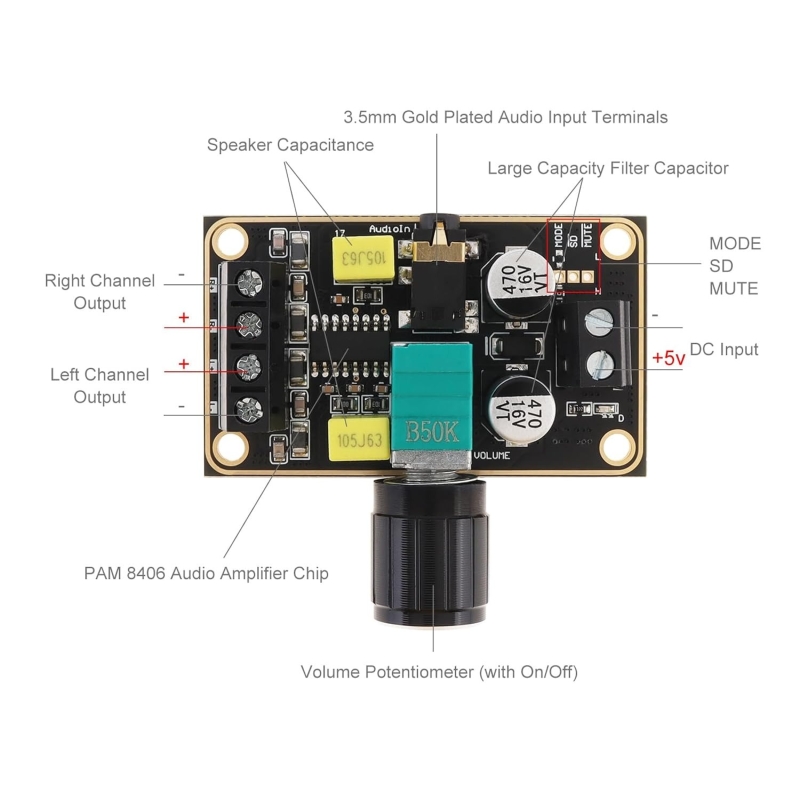 ماژول PAM8406 یک آمپلیفایر دیجیتال استریو کلاس D است که با نویزپذیری بسیار کم و بازدهی بالا، برای کاربردهای مختلف تقویت صدا بهویژه در تجهیزات پرتابل طراحی شده است.
