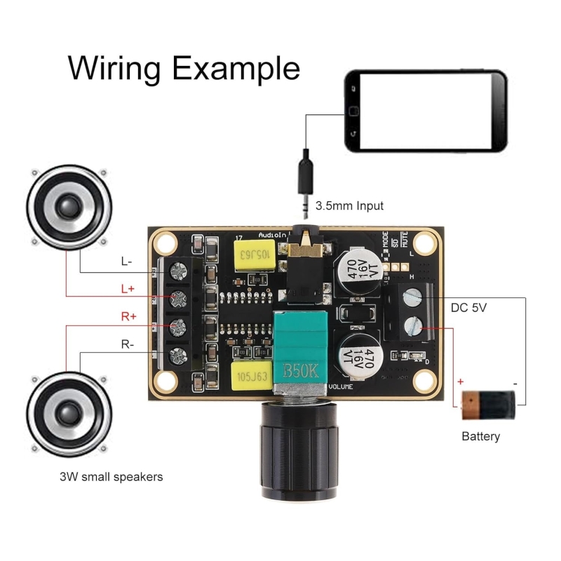 تقویت کننده کوچک 2×5 وات 5 ولت مبتنی بر تراشه PAM8406