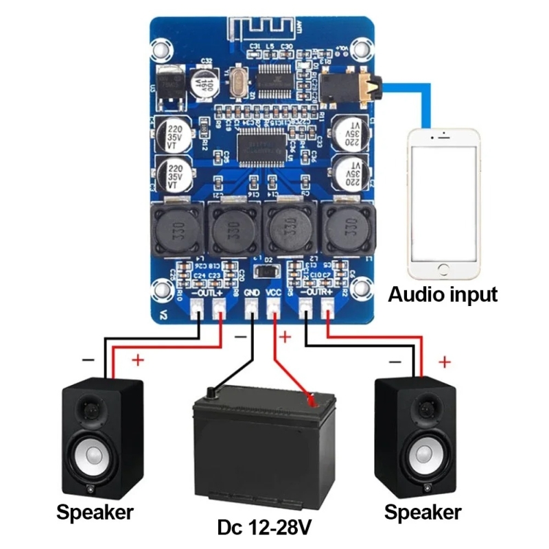 ماژول آمپلیفایر استریو بلوتوثی 2X30 وات کلاس D با ورودی بلوتوث و AUX برای راهاندازی مستقیم اسپیکر 4Ω یا 6Ω یا 8Ω