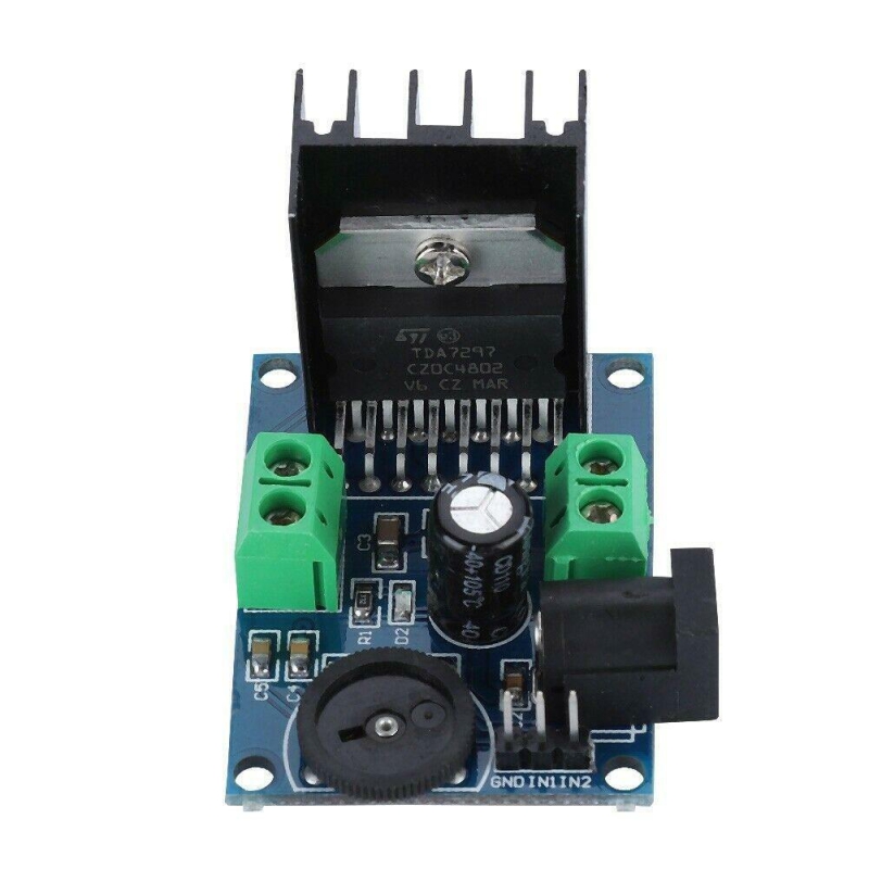 ماژول آمپلی فایر استریو TDA7297 دارای 2 خروجی 15 واتی و ولوم تغییر صوت است که ولتاژ کاری آن 18-6 ولت می باشد.بهترین بلند گو قابل استفاده 8-4 اهم می باشد که اتصال بلندگوها با توجه به مجهز بودن ماژول به کانکتورهای پیچی بسیار آسان است.
