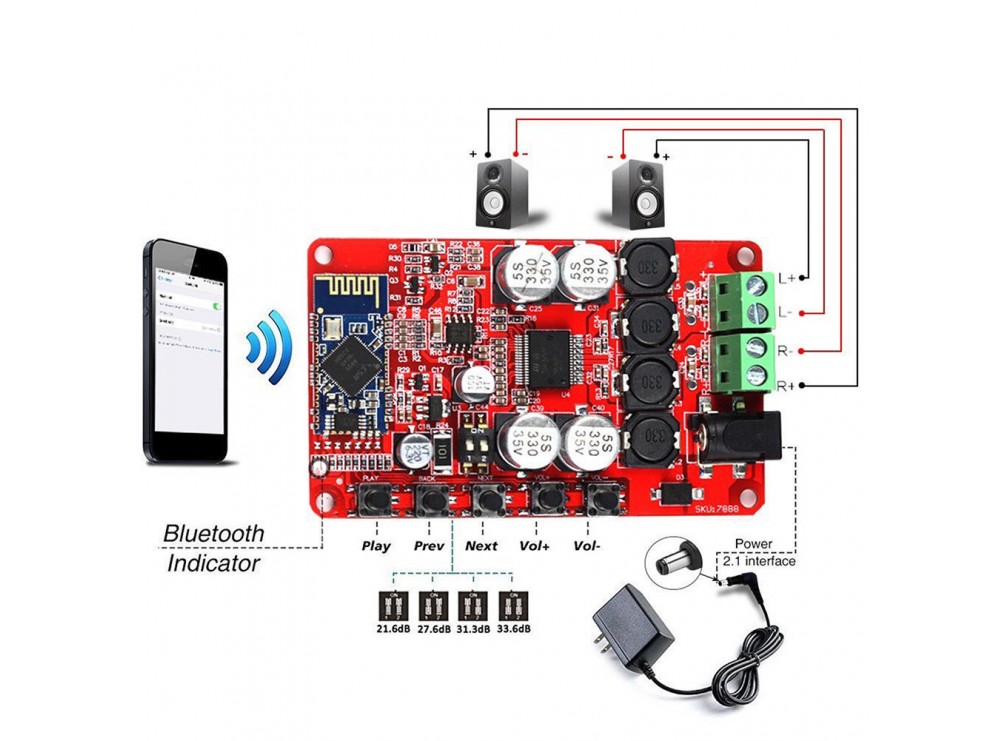 The TDA7492P amplifier module is a class-D audio amplifier with built-in Bluetooth connectivity. Using the TDA7492P chip, it provides high-quality stereo sound amplification with high power output. The Bluetooth feature allows you to connect wirelessly to audio sources such as smartphones, tablets, and laptops, providing a convenient way to enjoy high-quality sound.