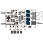 روی ماژول 5 عدد کلید برای استفاده آسان از ماژول قرار داده شده است تا بتوانید تنظیمات لازم خود را اعمال نمایید. هم چنین توسط DIP Switch نیز می توانید میزان تقویت تقویت کننده را تغییر دهید.