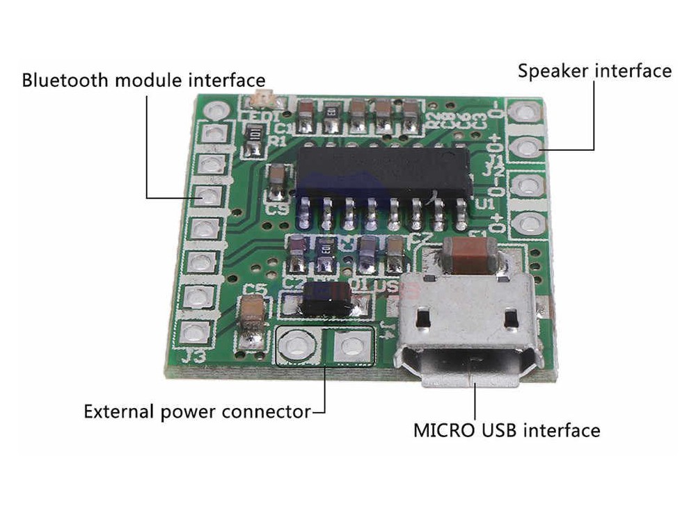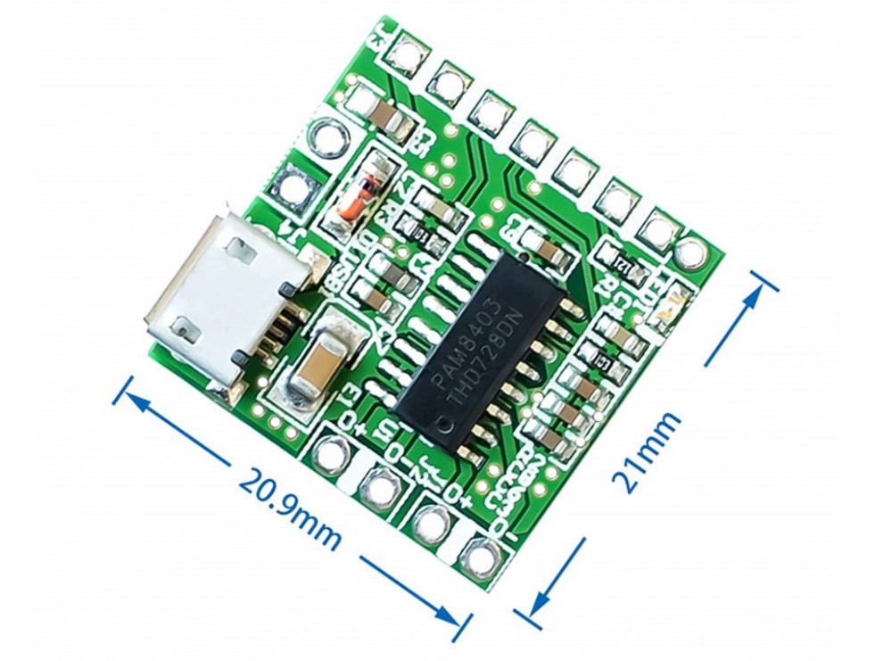 The board adopts the PAM8403 typical circuit design, the use of MICRO USB power supply (reserved welding wire interface), is very convenient to use universal mobile phone charger for the power supply, resistance container parts adopt standardized SMT process, simple and stable design special interface for Bluetooth audio receiver module, can easily DIY little Bluetooth speakers the board can pick up 8 ohms 4 ohm small speakers, suitable for all frequency horn or full frequency small speakers.
