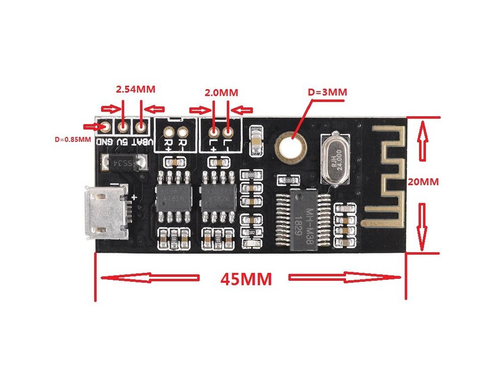 MH-M18/M28/M38 is a low-power Bluetooth design solution that supports the latest Bluetooth 4.2 transmission, two-channel stereo lossless playback, and Bluetooth wireless transmission when the module is connected to Bluetooth, which is very convenient. In an open environment, the Bluetooth connection distance can be up to 20 meters.Widely used in a variety of Bluetooth audio reception, a variety of audio DIY modification.For your different needs, we offer 3 versions for you to choose from: