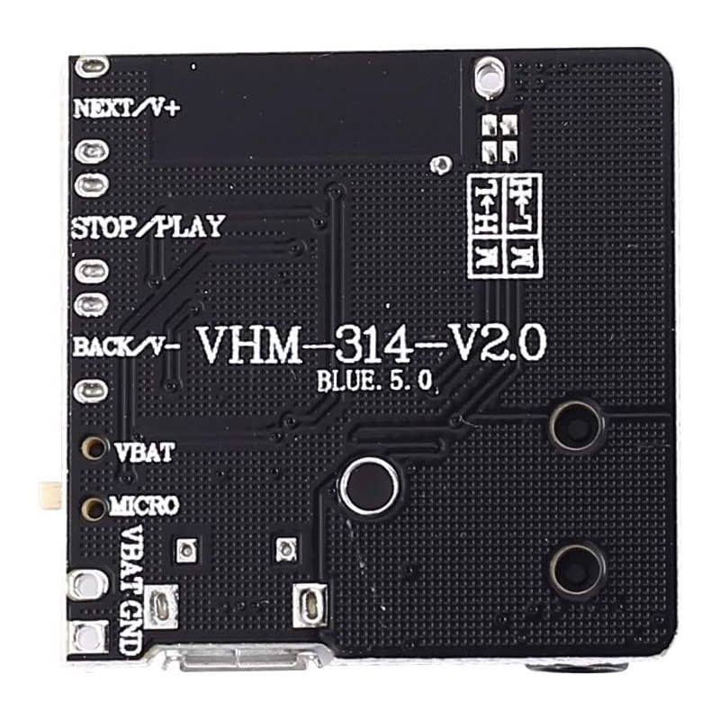 ماژول بلوتوث VHM-314-V2 دارای ورودی های میکرو USB و پورت جداگانه مخصوص اتصال باتری های لیتیومی تک سل برای تغذیه است. از طریق بلوتوث می توانید به این ماژول متصل شوید و خروجی صدا را با استفاده از خروجی AUX یا به صورت سیمی به منظور اتصال به آمپلی فایر یا هندزفری دریافت کنید.