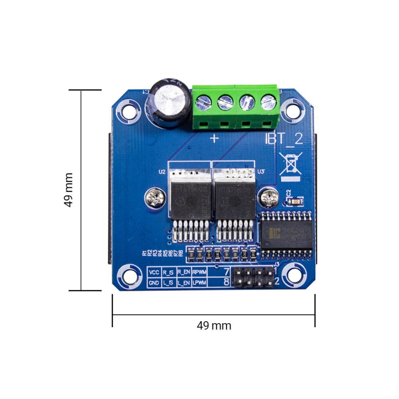 The drive uses an H-bridge driver module that composed by Infineon power drive chip BTS7960, with overheating and overcurrent protection. Double BTS7960 H-bridge driver circuit, with strong drive and braking effect, use 74HC244 chip effectively isolate the microcontroller and the motor drive! High Current up to 43A