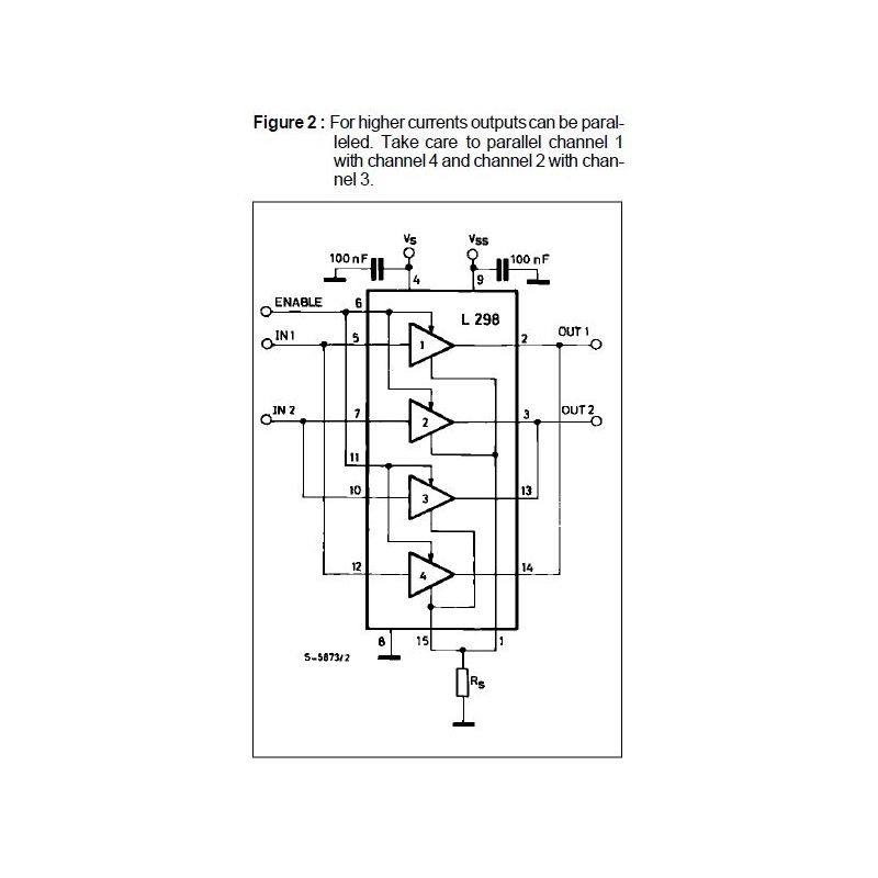 The Device is a monolithic integrated high voltage ,high current four channel driver designed to accept standard DTL or TTL logic levels and drive inductive loads (such as relays solenoides , DC and stepping motors) and switching power transistors .To simplify use as two bridges each pair of channels is equipped with an enable input. A separate supply input is provided for the logic, allowing operation at a lower voltage and internal clamp diodes are included. This device is suitable for use in switching applications at frequencies up to 5 kHz.