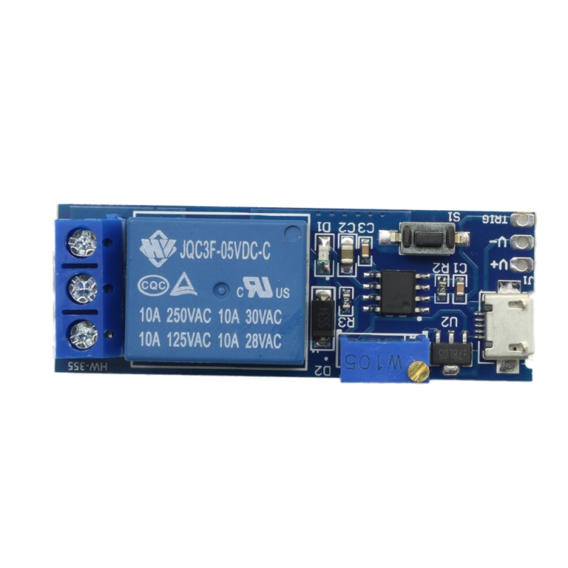 Wide Voltage 5V-30V Trigger Delay Relay Module Timer Module Delayed On-Delay Switch Button. The time can be adjusted by potentiometer to meet your use of most occasions. With MicroUSB 5.0V power input, very easy to use. 5 – 30V wide supply voltage. External trigger and on-board key trigger two ways. With relay pull indicator. Anti-interference ability, all kinds of interference relay will not malfunction, suitable for industrial control.