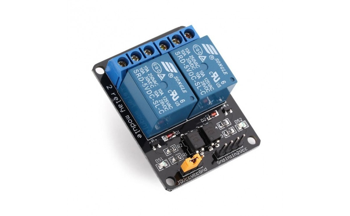 ماژول رله 5 ولت با دو خروجی با قابلیت هدایت تا 10 آمپر برای هر خروجی