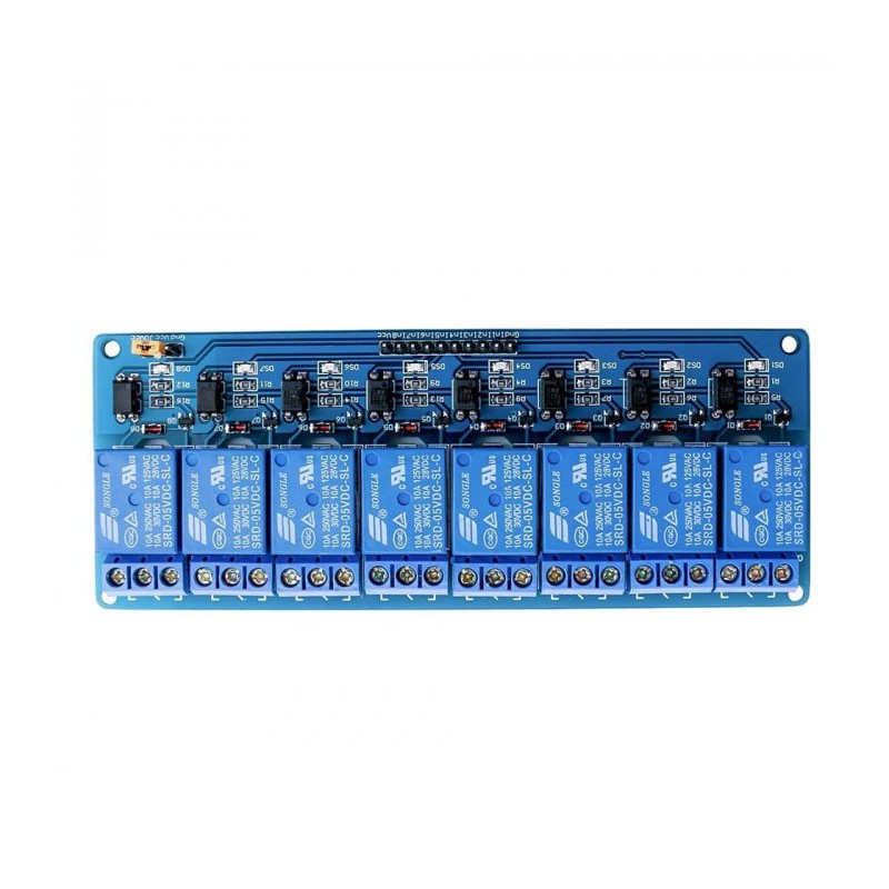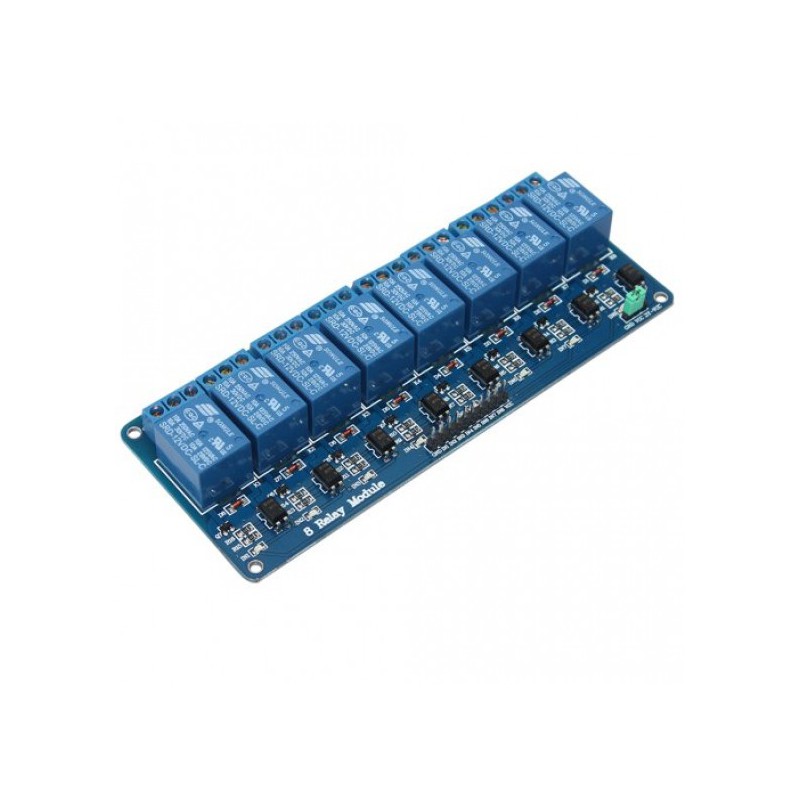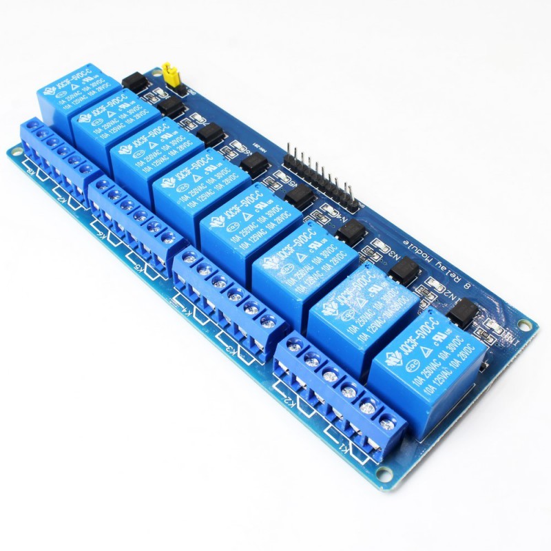 This is an 8-channel Low-level trigger relay and It can be controlled directly by Micro-controller (Raspberry Pi, Arduino, 8051, AVR, PIC, DSP, ARM, ARM, MSP430, TTL logic). Relays are suitable for driving high power electronic devices such as lights, electric fans, and air condition. A relay can be used to control high voltages with a low voltage by connecting it to an MCU.