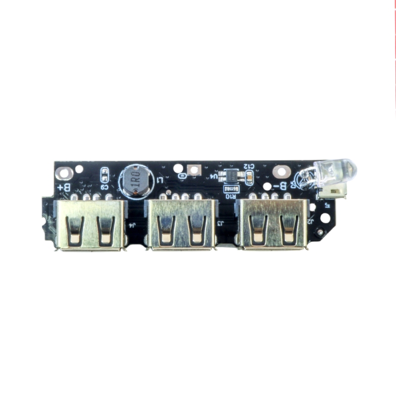 این ماژول مبدل ولتاژ DC به 5V با سه پورت خروجی USB، یک راهکار بسیار کاربردی برای ساخت پاوربانکهای سفارشی و منابع تغذیه USB در پروژههای الکترونیکی است. این ماژول قابلیت تأمین جریان خروجی تا 2.1 آمپر برای هر پورت را دارد که برای شارژ همزمان چند دستگاه مانند گوشی، تبلت، ماژولهای IoT و بردهای میکروکنترلر کاملاً مناسب است. ورودی این ماژول معمولاً از باتریهای لیتیومیونی (Li-ion 3.7V) تأمین میشود و با استفاده از مبدل افزاینده (Boost Converter) ولتاژ را به مقدار پایدار 5 ولت تبدیل میکند. وجود LED نشانگر وضعیت عملکرد، اینداکتور سلف با تلفات پایین و طراحی برد فشرده از ویژگیهای مثبت این ماژول هستند. همچنین با طراحی مدار محافظ، از خطرات ناشی از افزایش جریان و اتصال کوتاه جلوگیری میشود. این ماژول انتخابی اقتصادی و مناسب برای ساخت پاوربانکهای شخصی یا صنعتی با امکان شارژ همزمان چندین دستگاه است.