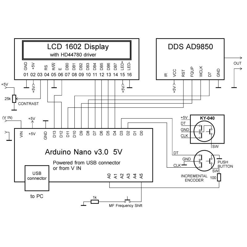 ماژول AD9850 یک سیگنال ژنراتور دیجیتال مبتنی بر تکنولوژی DDS (Direct Digital Synthesis) است که امکان تولید موج سینوسی دقیق و پایدار، موج مربعی و مثلثی را فراهم میکند. این ماژول از تراشه AD9850 ساخت Analog Devices استفاده میکند و به کمک کریستال داخلی 125MHz قادر به تولید سیگنال با فرکانس خروجی تا 40MHz میباشد. ماژول دارای دو خروجی موج سینوسی و دو خروجی موج مربعی است. همچنین از هر دو رابط سریال و موازی (Parallel/Serial Interface) برای پیکربندی توسط میکروکنترلر یا کامپیوتر پشتیبانی میکند. با استفاده از پتانسیومتر تعبیهشده میتوان Duty Cycle موج مربعی را تنظیم کرد. این ماژول تنها با چهار سیم بهراحتی با بردهایی مانند Arduino و STM32 راهاندازی میشود و برای کاربردهای آموزشی، آزمایشگاهی و مخابراتی بسیار مناسب است.