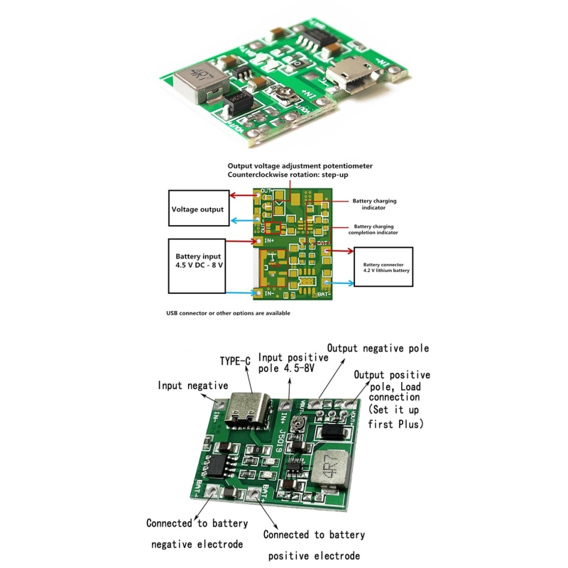 ماژول شارژ و دشارژ 2 آمپر TP4056 به همراه افزاینده با ورودی USB Type-C