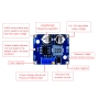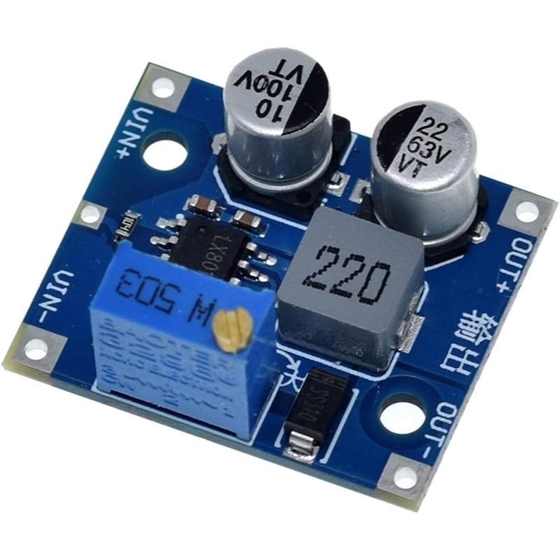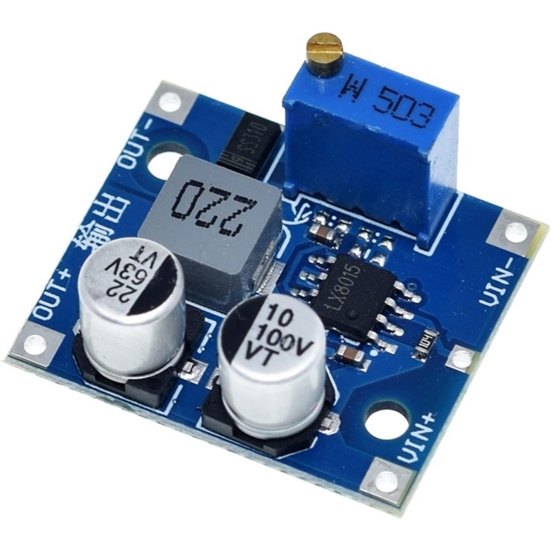 The LX8015 module is a DC-DC buck converter with a very compact design, high efficiency and stable performance, designed for industrial, electronic and DIY applications. This module supports a very wide input voltage range of 5 to 80 V, and is capable of providing an adjustable output between 1 and 62 V. The output voltage is adjusted using a precision multi-turn potentiometer and can be adjusted with high precision to power a variety of equipment.