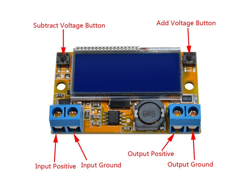 Using button adjustable voltage, left button to reduce the voltage, the right button to increasing voltage. press button one time can adjust 0.04V voltage, press and hold more than 1 second to quickly adjust voltage.