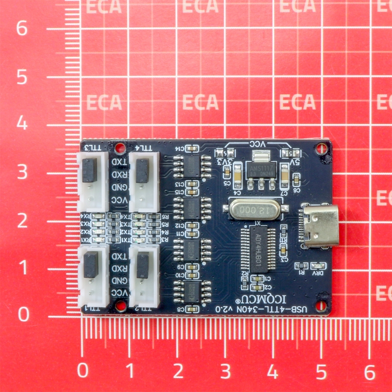 ماژول مبدل USB به چهار خروجی TTL مستقل با رابط Type-C و نشانگر LED برای ارتباط سریال همزمان با ولتاژ کاری 3.3V یا 5V (قابل انتخاب با تغییر مقاومت)